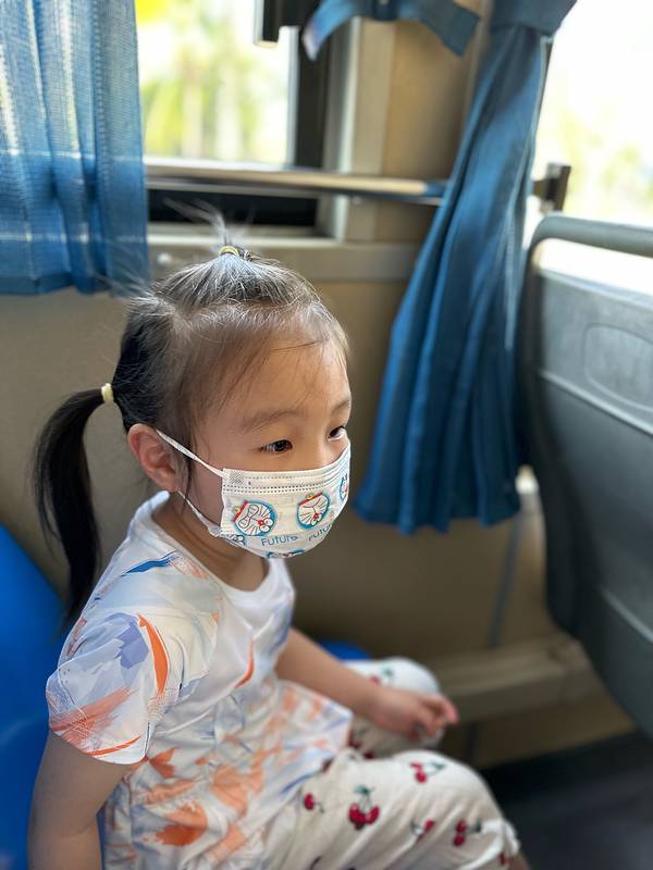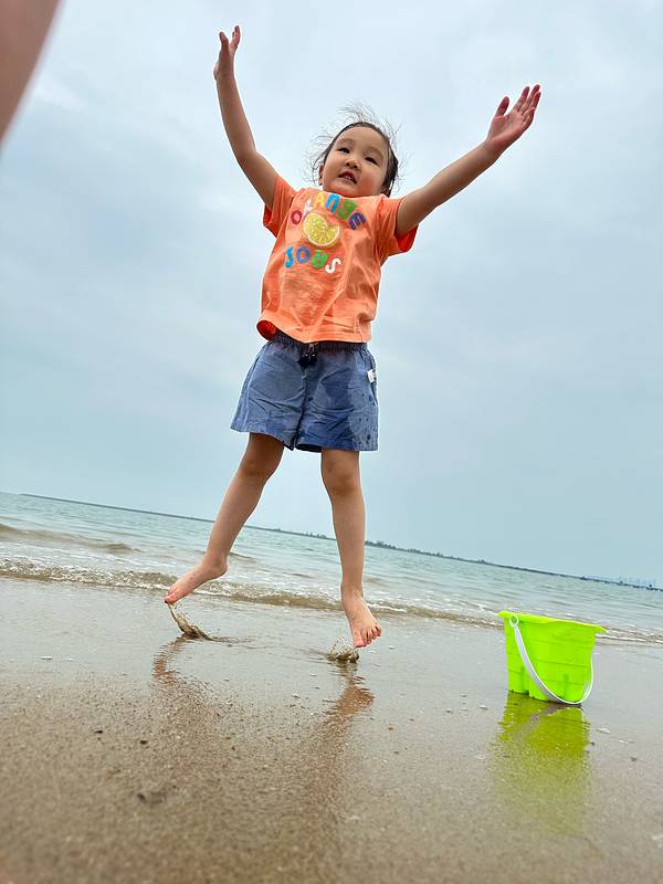 还是挖沙子开心。坐公交就很开心的孩子。结果骑了十分钟左右小家伙就失去了兴致,海边的沙子更吸引她