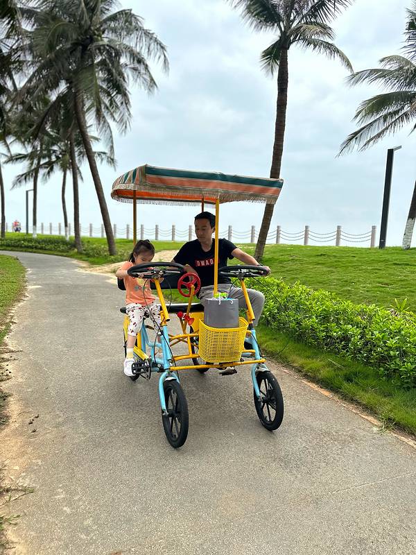早上因为要骑自行车,宝宝6点多就起床了,收拾好之后先去吃早饭吧爸爸我要这个小包包温馨的画面酒店的双人自行车,60块钱一个小时结果骑了十分钟左右小家伙就失去了兴致,海边的沙子更吸引她妈妈,看我飞起来了还是挖沙子开心玩的太开心,衣服都湿了,赶紧回去换衣服洗洗小脚丫我的大椰子,不喝椰子的时候,路都走不动,有了大椰子,多重都能抱着喝回房间之后,计划下午要去南北水果市场和免税店,去之前先让小家伙睡个午觉坐公交就很开心的孩子爸爸给买的柠檬水南北市场,第二次来水果很便宜,人很多,快递费占了水果价格的一半😂本来想买一些水果寄回家里给朋友们,结果小家伙各种不干要回酒店,只买了几个芒果准备回酒店吃😭我就说不带他俩来,他俩坚持要跟着,啥也没买上即使是这样,还要和我去免税店不要相信网上说的双子座便宜,买化妆品还是要去射手座的负一层哦,品牌很多,但我没买到很多,因为我女儿又要回酒店了😭一天没有游泳,回到酒店已经7点多,我们仨都想来个夜游,嘿嘿妈妈快给我拍个照小家伙游一会儿说冷了,那就去成人泳池看爸爸妈妈游泳吧,怕她冷,一共包了8层,哈哈,我的小粽子游泳之前订了啤酒和生腌帅气的爸爸呀已经9点多,外卖也到了,回房间咯,爸爸的小公主回到房间洗漱之后,爸爸妈妈吃夜宵,宝宝睡觉觉空盘了,我还吃了一整个大芒果,很好吃,很甜,很撑挺走了一下午,发现还是在酒店最开心,明天约了旅拍,不出门啦,还是挖沙子,游泳,享受假期最后一天吧,后天就要回家了