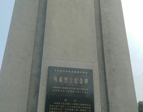 在齐齐哈尔转车,闲着无聊就逛过来,其实就是一处小区中的小公园一样,公园中间小广场上就立着殉难烈士纪念碑与一处小假山。这也是附近市民的休闲娱乐广场。