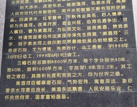 ...镶刻着著名书法家邵泽华书写的“美酒河”三个气势恢弘巨形大字,美酒河风景区雄伟、神奇、美丽、险峻