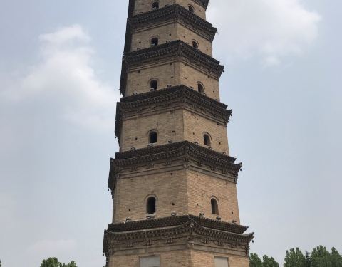 位于卫辉高速路口到市区途中,明代万历年间所建,六角七层,顶部是绿色琉璃瓦,线条稳重整洁,体现了明代建筑特点。也叫灵应塔。据说是璐王府扩建冲来城门,为压住地气,对着城门所建。也传说镇国塔位置是中国雄...