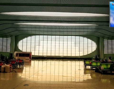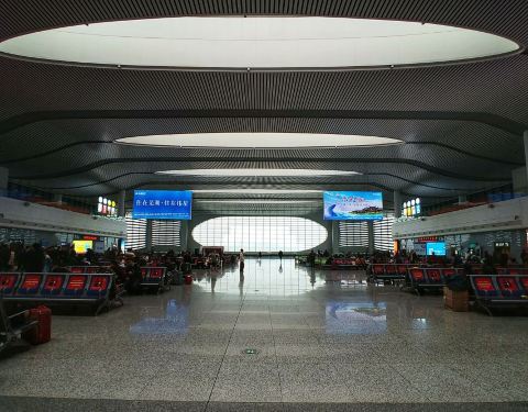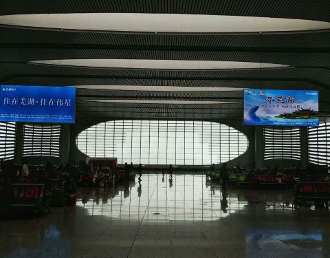芜湖站二楼候车大厅抬头看到这么大的玻璃幕墙,觉得还蛮有造型感的。 从芜湖到合肥,居然没有高铁动车,坐了久违的k字头,居然车身已然不是记忆中的红色,而是绿色的“绿皮车”,车上又见到了久违了火车式推销哈...