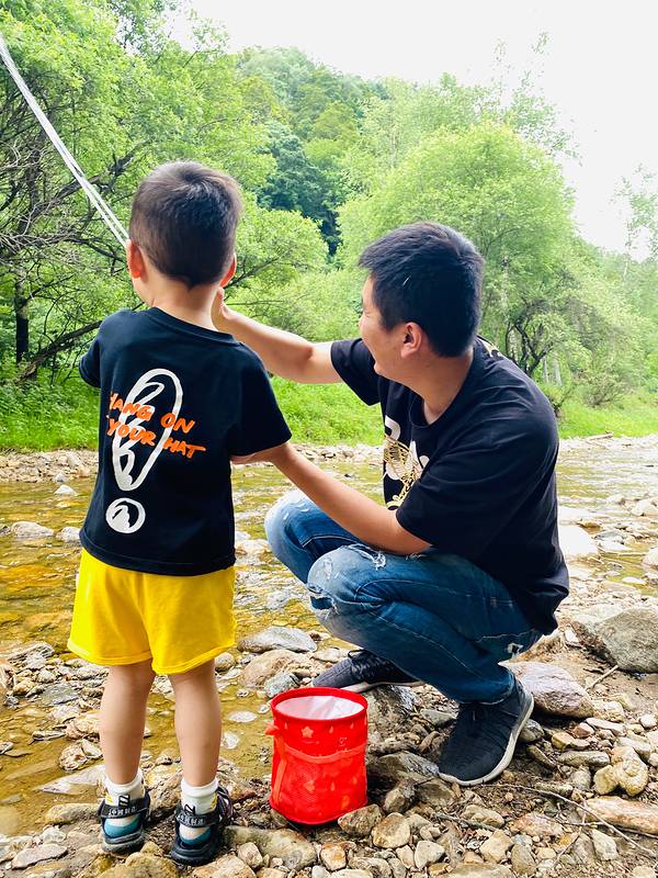端午节假期在家没事,带芒果小盆友来玩水!这个河道在去核心景区的路上,河面平坦还有树遮挡,可太适合夏天玩水了(这个停车场紧挨着的是一个公厕)和爸爸一起开心玩🔫,目标是对岸的树顶叶子🍃平缓的河道,很适合大朋友小朋友们嗨皮,可以打水仗,捞小鱼……