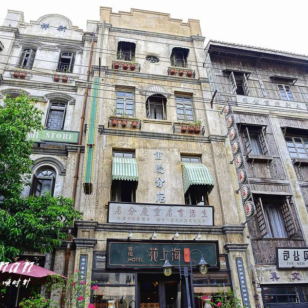 国泰戏院是观澜湖华谊冯小刚电影公社的1942街区的一个景点,整个街区以冯小刚电影《温故1942》中出现的重庆街道为蓝本。 1937年国泰大戏院建成,1937年2月8日,国泰大戏院揭幕。白天放电影,晚上演话剧。国泰的霓虹灯,曾吸引成百上千市民来看热闹。据小编了解到的信息,当时戏院有1500个铁背靠椅,天花板上有6个磨砂大吊灯。两边高墙各安了4个排风扇14万银元。可以说是一个比较大的标志性建筑了。抗战期间,中国话剧四大名旦舒绣文、白杨、张瑞芳、秦怡都在这个地方成名,并且郭沫若、夏衍、曹禺、白杨等这些文学大家都为戏院签过名。 虽然是按老照片复原的景点,但是了解那段历史的人行走其间会觉得每一栋建筑背后都有一段流逝的故事。1942街区有不少演艺节目,表演场次不多,不注意很难遇到。门票包含在观澜湖华谊冯小刚电影公社大门票内,我在网上预定128元,开放时间内随时定随时可以取票,不用提前预定的,大门票包含1942风情街和南洋风情街两个街区。