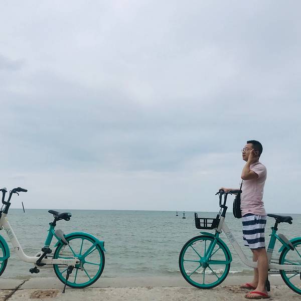 海口的海边,我和他骑着自行车前行,迎着海风,听着海浪,我相信我们可以走得很远……他在后面守护我,就像现在的我和他,虽然看着我骑得更快,我可以无惧向前,是因为他在后面默默守护着我,追逐着我。我不怕,我知道他一直在后面看着我~