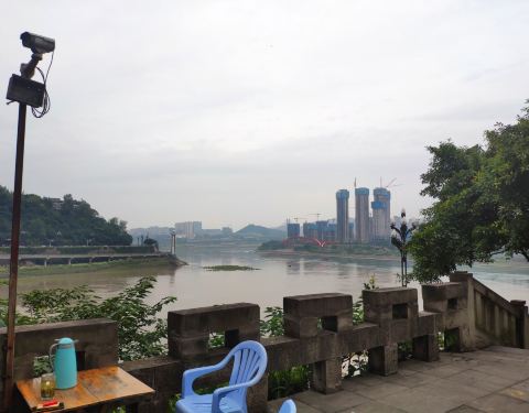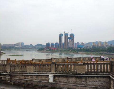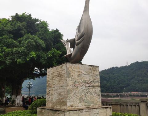 住的宾馆出来闲逛不远处就来到这个广场。广场很大,有不少老年人在江边锻炼。有跳舞的,有打牛牛的。江边还有好些茶馆,边喝茶边看看江景很是惬意。江里还有些船只,广场上有个鱼类雕塑,刻字介绍这里是长江上游珍稀动物自然保护区。没事可以来看看,照照相打打卡。