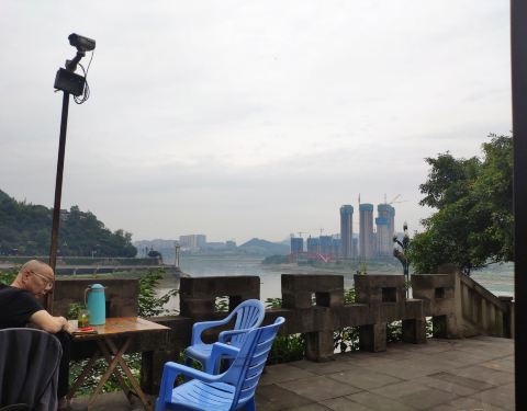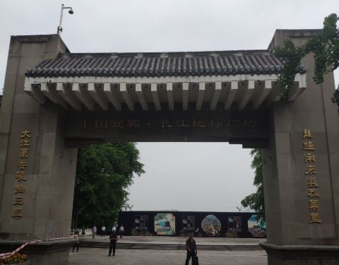 住的宾馆出来闲逛不远处就来到这个广场。广场很大,有不少老年人在江边锻炼。有跳舞的,有打牛牛的。江边还有好些茶馆,边喝茶边看看江景很是惬意。江里还有些船只,广场上有个鱼类雕塑,刻字介绍这里是长江上游...