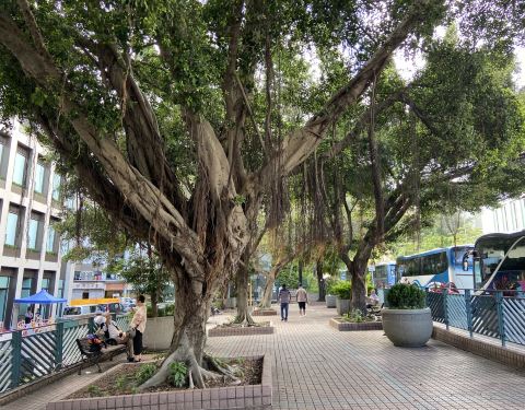 参观完美荷楼,下坡过路口就来到了大埔道休憩花园,位于钦州街的尾段,和大埔道的相交处。狭长的花园,长椅挺多的,有不少人在休息,有很多大榕树,长长的树须垂下来,时不时的就会有专人来修剪。单纯性的一个歇脚的地方,没有游乐设施。
