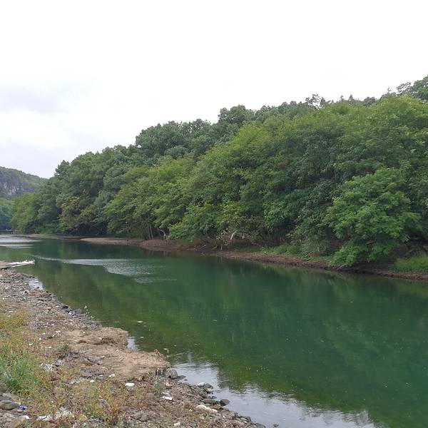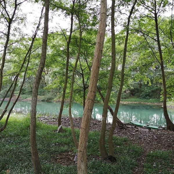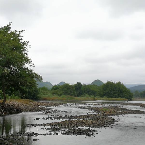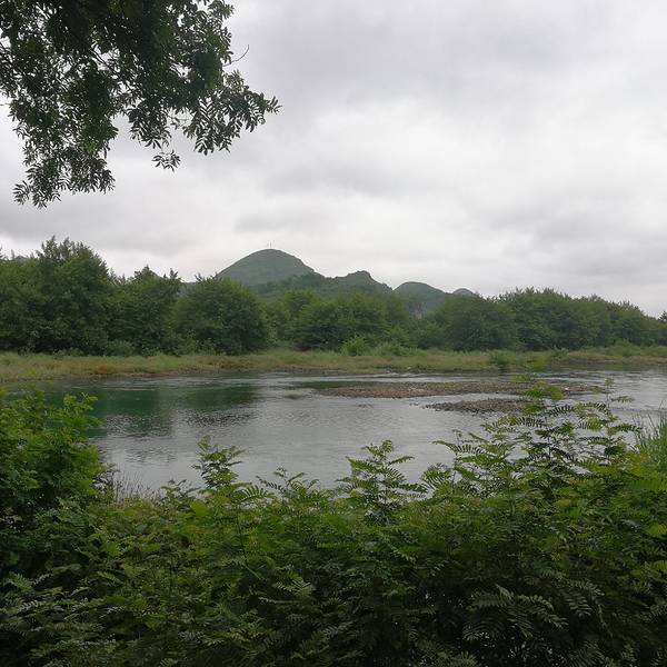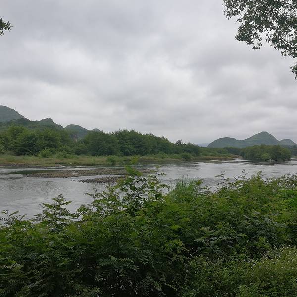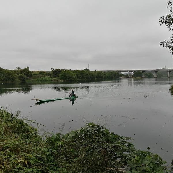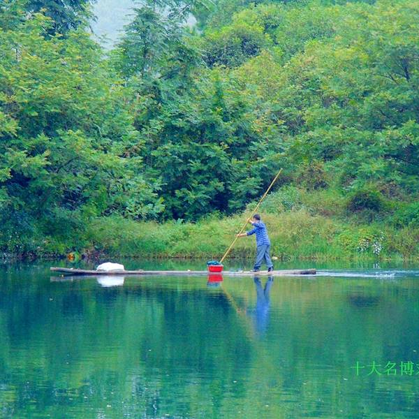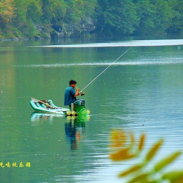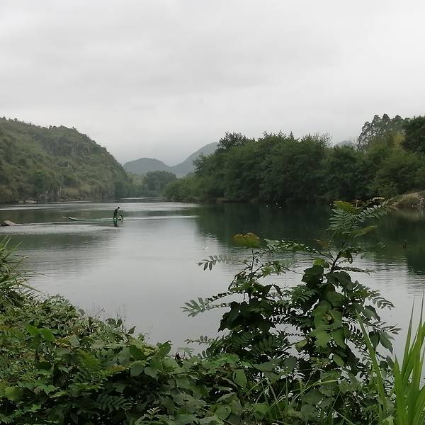 月岭村步月岩的洞口外面,是一条江,水非常清,这条江叫灌江,步月岩在灌江东岸。突然一条竹排掠过,我问,能不能搭我们玩一下,他说不行,竹排称重不够。而他只是往前100米就停下了,竟然在江中垂钓。这是多么美...