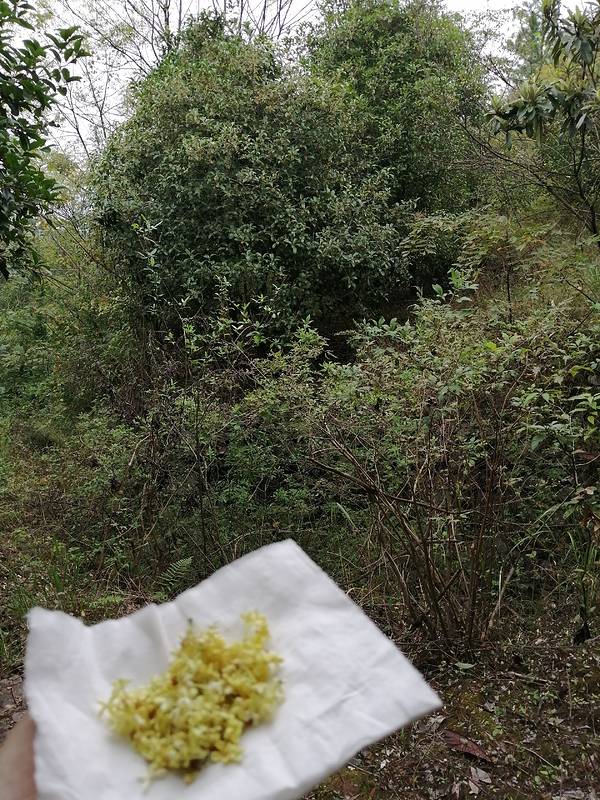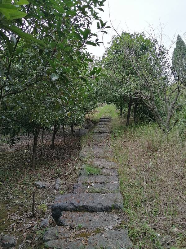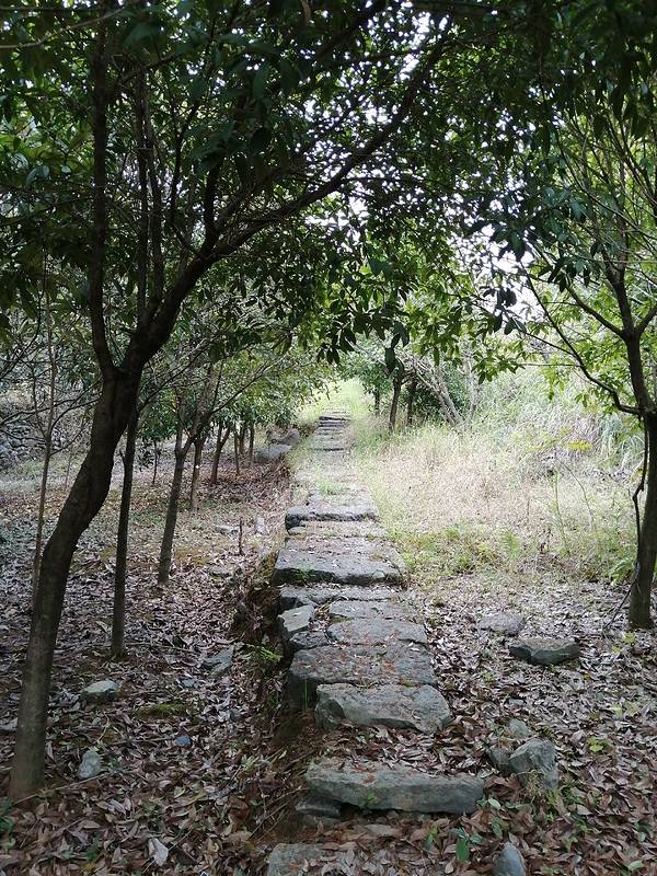 ...看到往上的青石板古道,我们由此往山上走,一路上看到种了很多桂花,掉到满地都是,忍不住就摘了一些