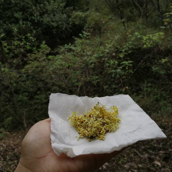 自驾来到灌阳月岭村,在灌江边走了没多远,就看到往上的青石板古道,我们由此往山上走,一路上看到种了很多桂花,掉到满地都是,忍不住就摘了一些。后来拿来和紫色的野菊花一起泡茶,好香,还很下火哦。