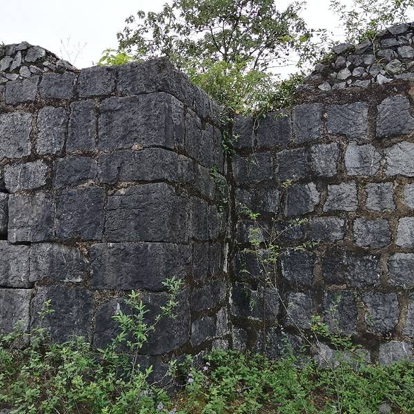 这个炮台位于一片石林之上,山坡的顶部,下面是步月岩和灌江,右边是青石板古道,真的是易守难攻