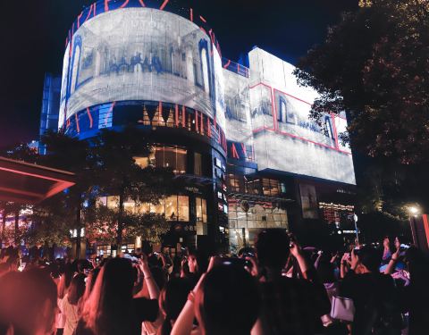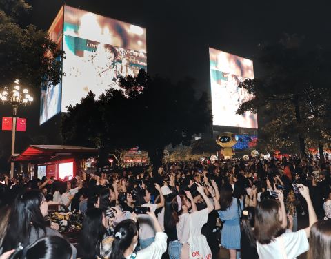 绿轴广场上一直有很多灯光的互动装置,好像改名叫了光仙森,每天晚上都有超级震撼的灯光秀,去的时候正好碰上张艺兴的!超开心!还偷偷向摄影师要了图
