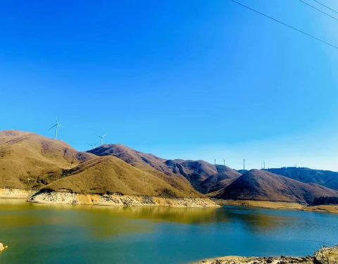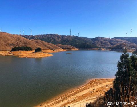 传说中的广西壮族自治区桂林市全州县天湖水电站的风景!好漂亮她呀,蓝蓝的天空,绿绿的水!