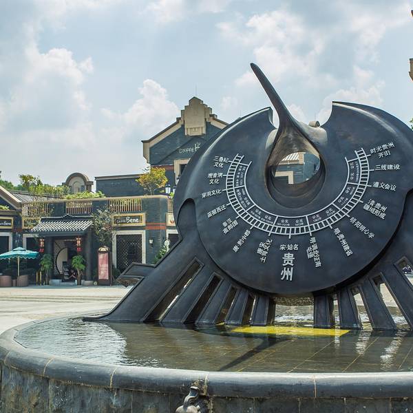 时光贵州这个古镇不大,但是总体来说还是比较精致,这边的街区就显得古香古色一点,很适合穿个汉服转悠一下,拍照会相当好看。时光贵州号称要展示贵州屯堡文化,走在景区里确实能感受到屯堡风采,传统的屯堡文靠山不近山,临水不傍水,视野开阔,这里也确实符合屯堡的选址要求。 青花路面、文艺井盖,这样的小装饰跟一些图腾随处可见。听说这个广场在大节日的时候还会有地戏表演,看了一下介绍,感觉地戏肖似傩戏,神秘气息比较重,不过这次来并没有看到什么表演。这个大门楼古韵气息比较重,感官上还是比较不错的,就是“古镇”有点新。往里边走确实有点惊艳,这里的楼仿古做得特别好,很有历史的厚重感,不太清楚每栋楼有什么功能,但是光外形上说确实颇有韵味,很适合拍照。这一片建筑就是海派风格,有种老上海的感觉。晚上吃过晚饭在这一片区域晃荡,还有露天电影播放,确实还挺浪漫的,夜晚的风很温柔,加上清镇本来就不热,所以夜风凉凉的,吹得人心头都很安逸。这个景区也是有趣,从古风感到海派感,对面就是楼盘,又很有现代感,仿佛一层一层穿越,相当奇妙,非常适合文青们。虽然都是仿古建筑,但是对于婉约的江南派、精致的岭南派、厚重的北方派古建筑和仿古建筑,时光贵州的建筑就更独立一点,更有石头城的那种奇异感觉。