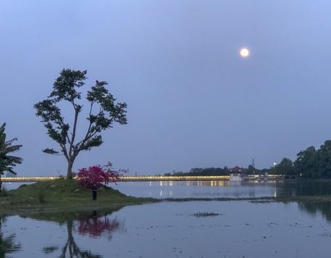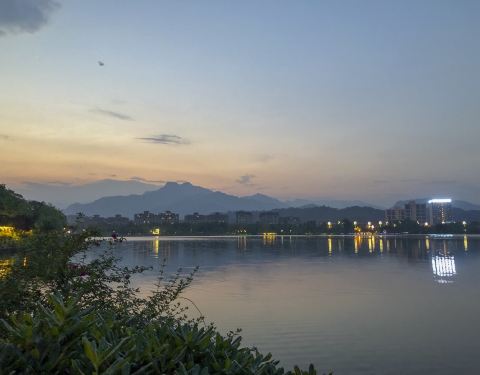 夜景不错,特别是那个拱桥夜景很漂亮。湖面宽广,环湖漫游估计有5公里,空气清晰舒适,是度假休闲的好地方