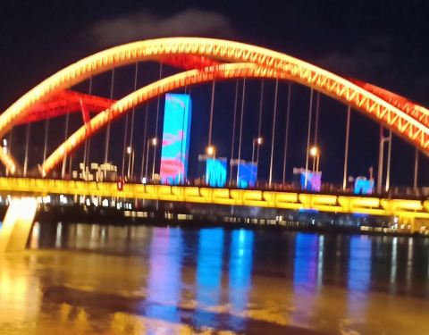夜晚滨江两岸及跨江几座大桥的灯光绚丽多彩,凉风习习,星空遥远 2019-12-09 22:11