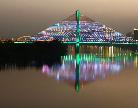 沿江修建,交通方便,特别是光彩工程,晚上非常漂亮!
