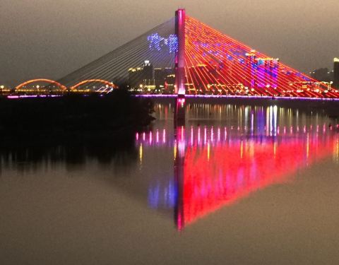 嘉陵江母亲河,夜晚更加漂亮,灯光下很美