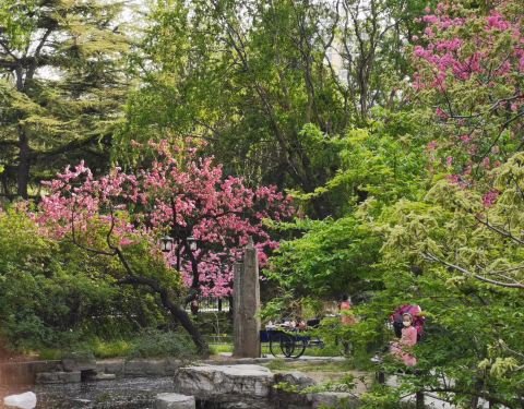 游客们走进这个由绿色和鲜花打扮而成的公园,顿使整个旅途洋溢着欢声笑语与幸福