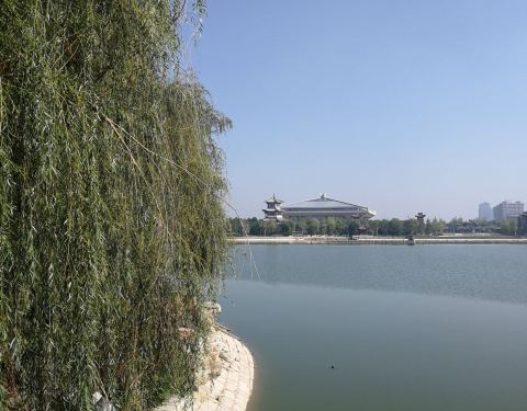...看起来并没涨多少,不过天气凉爽了很多,沿河一游很惬意,对面就是新建的孔子博物馆,那也是网红景点