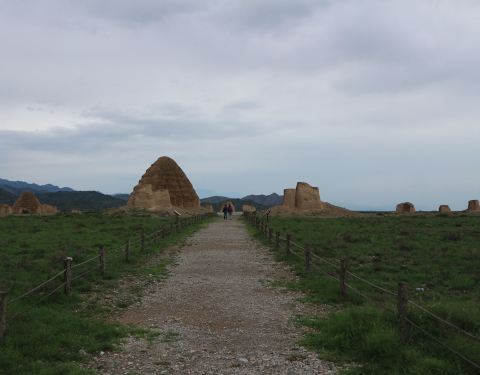宁夏银川的西夏王陵是非常的残缺的,剩下了不多的一个个小土塔,有几个还只能说是小土堆了,其中有一个供大部分人参观的土塔前有一长长的墓道,也就是一条土路了,现在铺了水泥。