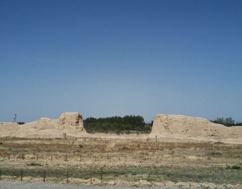 应该称三号陵或李元昊陵吧,这里是被推定为西夏建国者李元昊的陵园,就在博物馆附近,也是游客唯一能走近各建筑遗迹的陵园,穿过门阙所在的城门,能看到一对碑亭的残存土堆,过月城就是陵门,之后是献殿的台基,走过隆起的墓道就站在最大土堆陵塔前了。而墓室不在塔下,在墓道尽头的土坑下面,不开放。