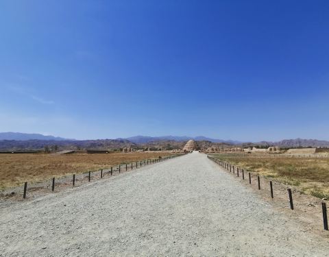 西夏陵的墓道在一号陵那里要坐电瓶车进去,开很长一段路才抵达