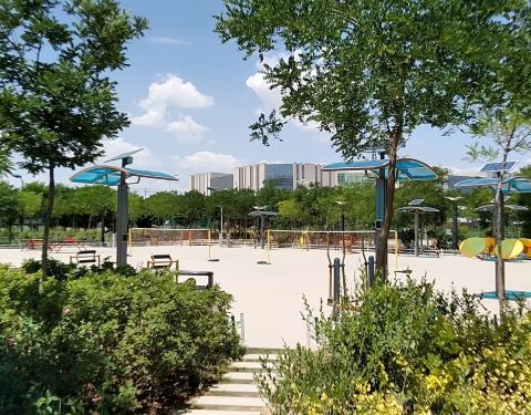 各地都很流行的音乐喷泉在这里也可以看到 保持了一贯巨大的湖泊和广场造型 不过总体上还是感觉没有什么人气 毕竟餐饮服务设施并不多 公园西侧各式各样的体育设施倒是很不错 无论是篮球羽毛球还是一些健身器材都布局合理和方便