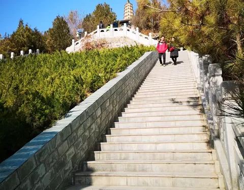 过来的人并不算是特别的多,而且空气跟景观都相当好,是白塔山这边一个中点处,旁边有台阶就可以直接...