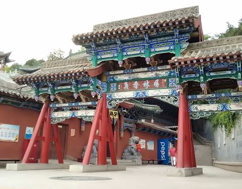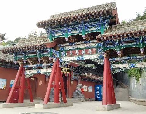 是从白塔山公园大门去白塔寺的两条路中靠东边一条路必须要经过的一个寺庙,门口有一座牌坊式门楼和一...