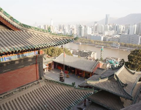 好像很多地方都有法雨寺,不知这个命名有什么典故。兰州法雨寺位于白塔山山腰,虽然不及山顶的白塔寺知名,但也是占据着非常有利的地形,从中山铁桥登山必然经过。寺前的牌坊、院墙很有意境,而且在平台上也能观赏到黄河与兰州城的壮丽景色。法雨寺的悬楼也是一大建筑特色,不过5点就关寺门了,没能进去有些可惜。