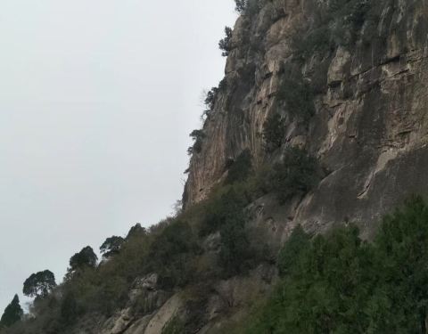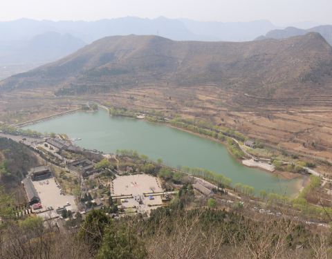 位于山脚下的一条狭长的步行街,两侧都是当地商家,所卖的千篇一律的号称百年古藤或是根雕,斜目以视,貌似分量不轻,我怎么扛回去?山路左手边可见碧波荡漾的水库,抬头看看,神殿在云雾中浮现。