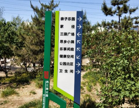 西三旗公园位于永泰庄东路西高高的输电架下面,是个路边南北长条状公园,分南北两区。公园除了花草树木,规划有健身区,亲子区等,公园有两条小道,一条清风正道,陈列有古今关于清廉的语录,另一条是家径,地面铺有铜铸的不同体的家字。