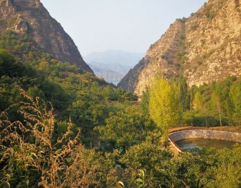 地点在迁西县城北边脑峪村附近山里,离潘家口水库不远处。不过进出山庄,山路狭窄,会车时需要良好的驾驶技术。山庄本身景色真美,周围都是栗子树,背靠山崖,据说还会开发登山步道。房间有北方农村风格的(含厨...