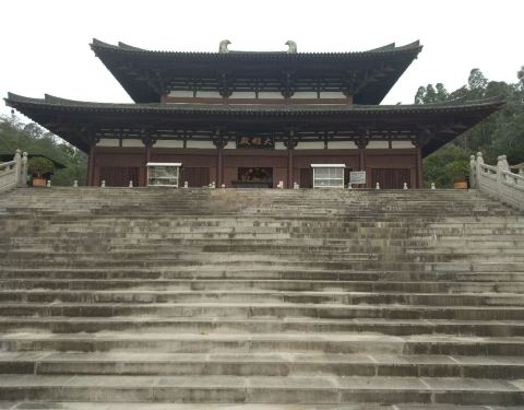 沿阶梯而上就是大雄宝殿,大雄宝殿威武霸气,还有直梯,后面是无量寿殿。中国传统的建筑,看起来还不错