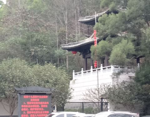 红花湖景区里面,大门进去爬山坡,然后到平地了就看到了。寺庙蛮大,庭院大,有钟楼鼓楼和大殿等建筑。这里有公共洗手间,至于要买东西的继续前行到游客中心吧。