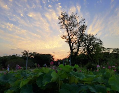 这个季节,正是去象湖公园赏荷花观夕阳的时候。上午尽量早一些去,那时避开放,争夺斗艳,大片大片,很美!尤其在万寿塔下,小桥边上。到了日暮夕阳西下时,观西边的晚霞,又是不一样的景致。