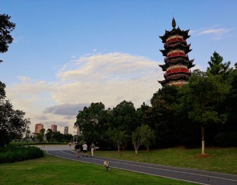 一些观景处建有亭台楼阁,非常古典优美的衬托着园林景色,挺适合当地人日常休闲锻炼,就是有点偏离市中心