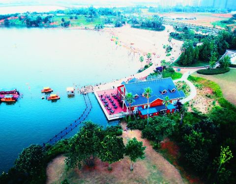 【景色】人造小型沙滩,观景台,和凤凰形状的花地,一年四季都美丽。进贤最漂亮的地方