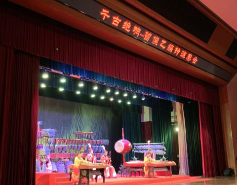 除了编钟外,还有古筝、钟磬等等,前面演奏的都是古曲,最后一首竟然是《欢乐颂》,挺有意思的
