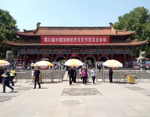 ...建造的,其底部东,西,南三面墙上的黑线划线反映了当时三十多个与洛阳有关的历史故事,周边绿化很好
