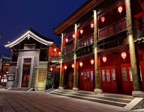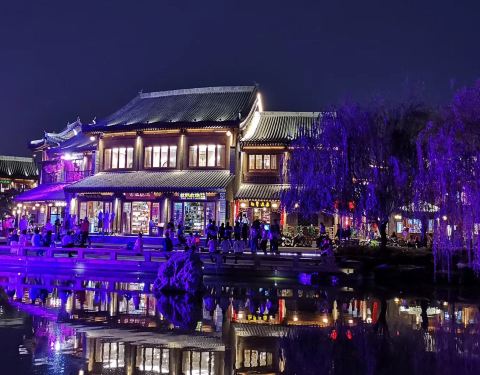 新修缮的,在洛邑古城,夜晚的灯光表演地方。