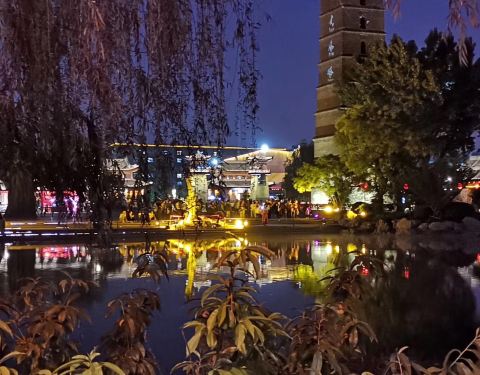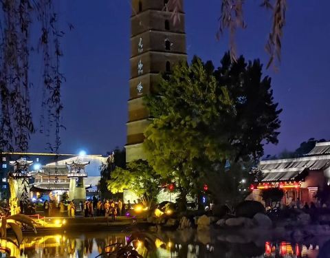 洛阳文峰塔就在洛邑古城内,凭身份证就可以进古城游览,是免费的哟!洛阳有句老古话是这么说的,“洛阳有做文峰塔,离天只有仗七八”,可见在古代这座塔是十分高耸威猛的!在钢筋水泥的现代,可能它已经不算高了,但是站在塔底仰望,依然可以感受它的雄壮!每天晚上九点在文峰塔广场还有精彩的光影秀演出,可千万别错过了哟!!