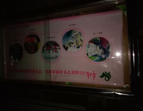 西南大学桃园园区文化广场是桃园宿舍楼前的一片空地,在旁边的的墙体上有些玻璃化的文化窗框,还有一堵立墙