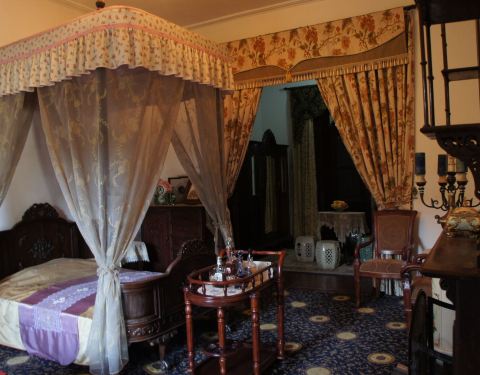 ...结构,房间内的设计则很新式,法国式样的百叶窗、壁炉和铁艺大床,还有日式拉门,西洋风格的物件很多