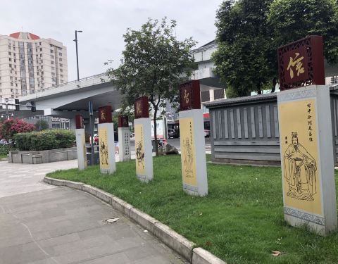 高升桥小游园。 高升桥小游园位于成都市中武侯祠大街与一环路交界处,利用十字交叉形成的空地,修建的市民小广场,小巧别致,造了一些小景,周围市民休闲以及外地客人短暂小憩,不错。