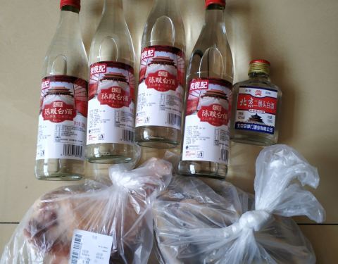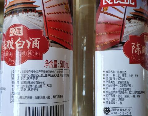 文化广场北端宜家旺购物广场地下物美超市近期天天有特价促销,今天(2020年04月26日)大鸡腿5.99元一斤,特价小黄鱼3.99元一斤,粮食记陈酿白酒5.99元一瓶,这酒从执行标准和配料表看,是粮食酒(浓香型固态酒)。这一堆40元人民币,超值有没有?
