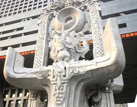 证券交易所广场最吸引眼球的当属高耸的雕塑 巍峨