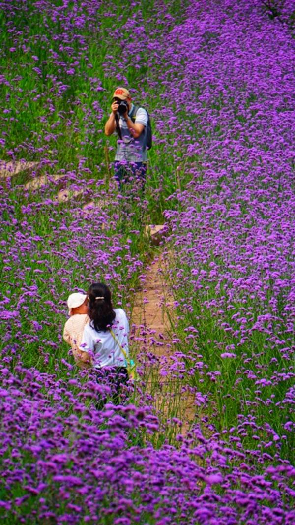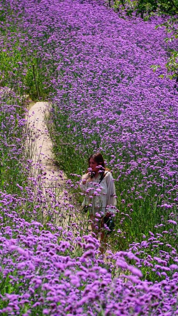 重庆这样一座火炉城,还未到夏天就已经感觉到了出门在外寸步难行,在外办事,办完事路过一个人烟稀少的地方,突然发现了一处花海,这花是:马鞭草。不过不仔细看,还以为是薰衣草呢~ 紫色,在重庆这样的地方是很少见的,我停下脚步,拿起相机咔咔嚓嚓拍了起来,当天人也有一些,经打听后才知道,这是一处正在建设的楼盘地,才来到的人都是附近的居民(不过我相信接下来人会越来越多,毕竟大家对好看的花花草草是没有抵抗力的。(爱心小蜂)(爱心小蜂)(爱心小蜂) 交通攻略: ①自驾车辆直接输入重庆融创碧桂园望江府即可。 ②重庆地铁6号线—高义口站3A口出——步行2公里到达。 注意提醒:因为目的地是一处正在建设中的楼盘群,到了目的地后若找不到可以问问就近的安保人员即可。 实用tips: 1:整个园内非常大,平路较多,有一口小湖,有草坪,但是艳阳天需要注意防晒,出门前做好防晒工作,带上阳光帽,墨镜,藿香正气液等。 2:整个园内有1个WC,有1个小小的副食店东西不多,附近也没有更多美食选择,请做好自备干粮,自备水。 3:拍照建议带上装饰帽,气球,泡泡机,装饰道具等。人物服装建议还是以单色亮色为主,和紫色的马鞭草有一个颜色对比,拍照出来的感觉让人物更突出。 4:园内有巡逻工作人员,不要采摘花朵,不要乱扔垃圾,更不能不听工作人员的指示。 特色推荐: 1:园博园(门票16元/人) 2:悦来美术馆(免费) 3:常青藤四季田园(免费) 4:碧津公园(免费)